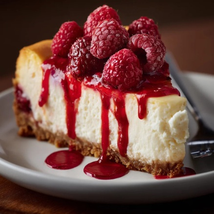 A soft and creamy cheesecake slice topped with fresh strawberries and a sweet berry glaze. Perfectly balanced and irresistibly refreshing.