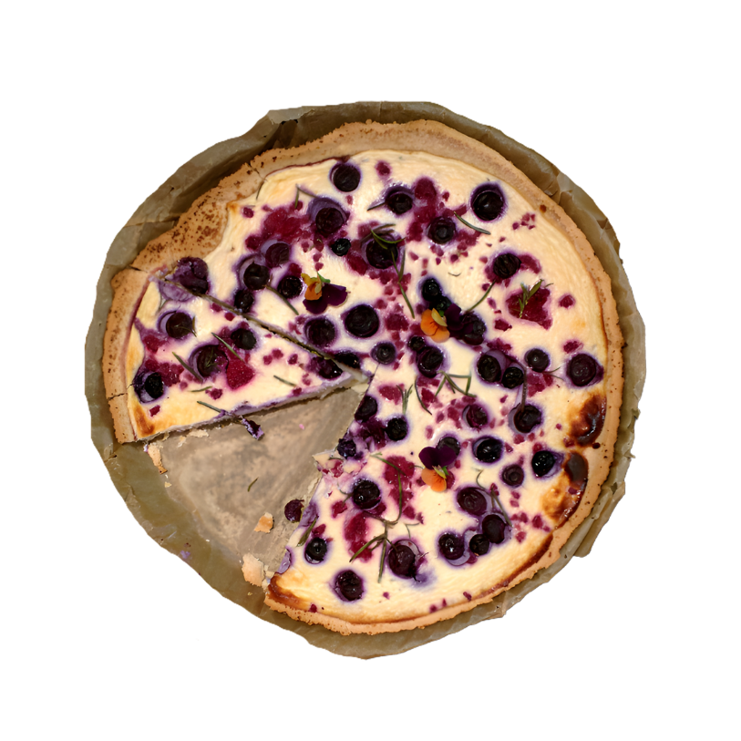 Fluffy cake topped with sweet blueberries for a fruity, vibrant treat.