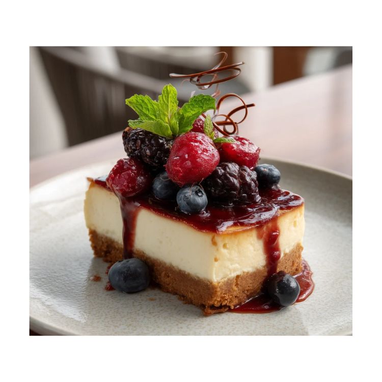 Creamy cheesecake topped with fresh strawberry flavor for a sweet delight